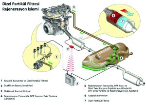 Dizel Partikül Filtresi içerisinde biriken kurum yükü, araç üreticilerinin belirlediği periyotlarda “Aktif Rejenerasyon”, “Pasif Rejenerasyon” ya da “Zorlama Rejenerasyon” olarak tanımlanmış rejenerasyon biçimlerinden biri ile yüksek ısıda filtre içerisinde yakılır ve küle dönüştürülerek yine DPF içerisinde biriktirilir.